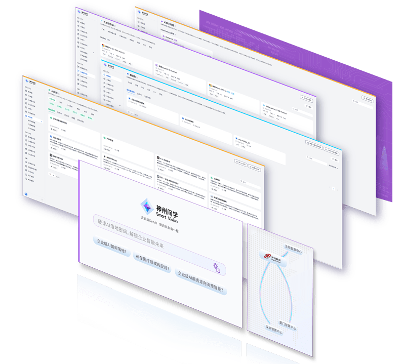 打通GenAI落地企业的算力、、、、模型、、、、知识、、、应用四大要素,,,综合解决GenAI工程在选、、、练、、、、用、、、管四大环节的问题,,,,旨在为企业的数智化转型提供全套的GenAI智能应用工程流水线。。。皇冠体育问学包括模型算力管理平台、、企业私域知识管理平台、、AI应用工程平台三大模块,,,,为企业提供更先进、、、更匹配的大模型,,,,解决了算力上信创适配、、、融合调度、、、、企业私域大模型高效推理训练问题,,,同时解决了数据到知识的向量化以及场景应用的轻量化组装问题。。